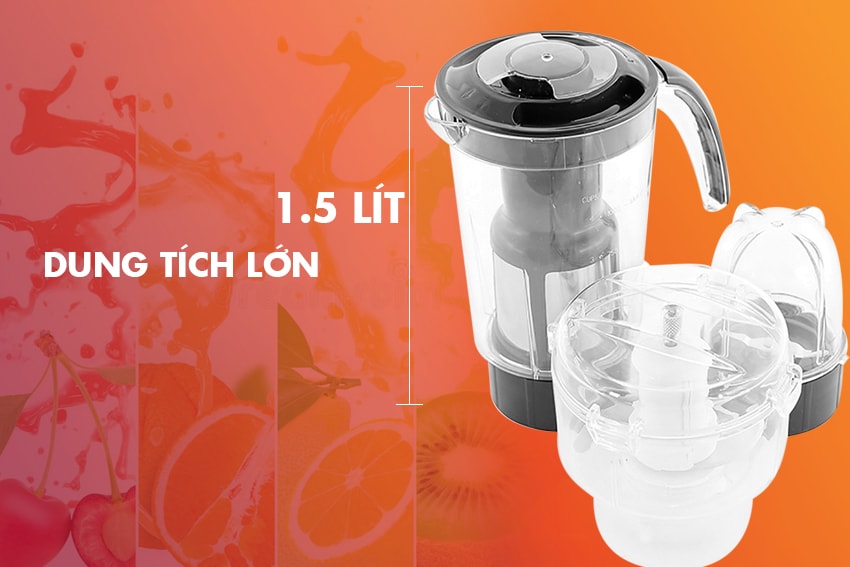 Cối xay lớn có dung tích 1.5 lít, xay được nhiều thực phẩm cùng lúc, đáp ứng được nhiều nhu cầu sử dụng của gia đình bạn.